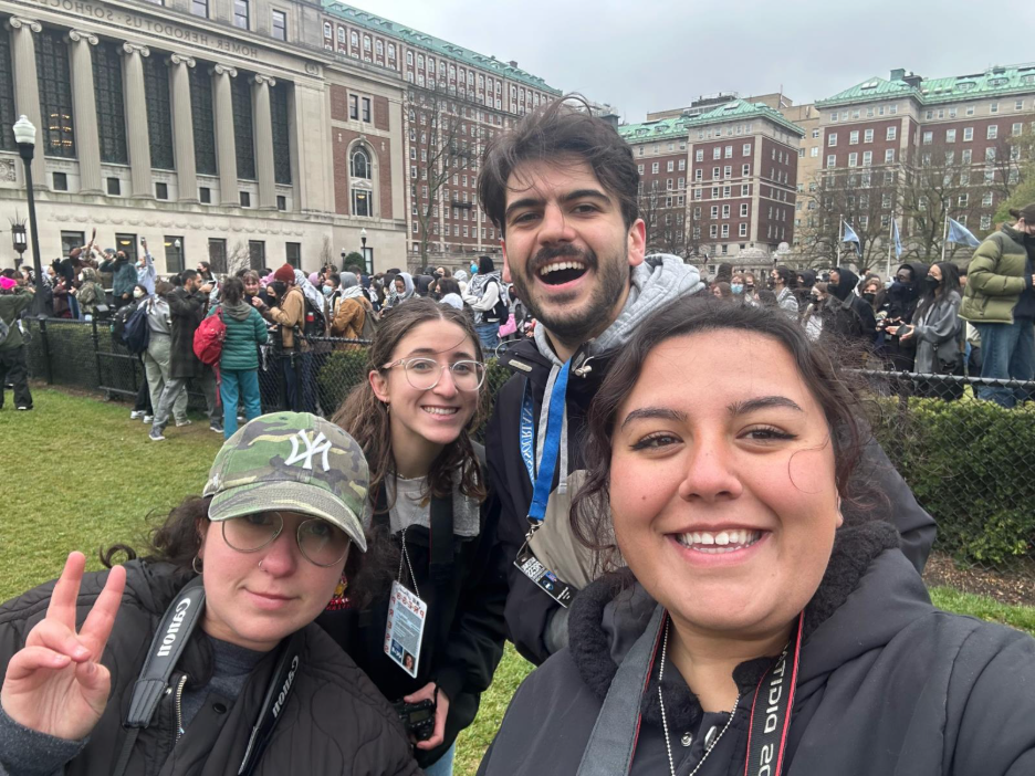 Storel and his peers covering protests at Columbia University. Source: Marco Postigo Storel